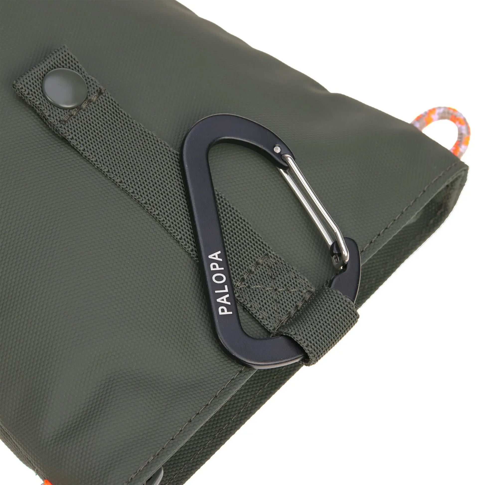 Mithilfe des stylischen Karabinerhakens kann er in einem Handgriff am Gürtel befestigt werden.